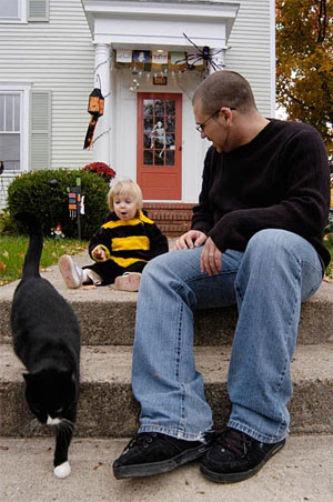 My cousin Dan is in town visiting, and he brought his 19 month-old daughter, Elise! Last night I went over to his house and joined them and Uncle Tom as they handed out candy to Trick or Treaters.